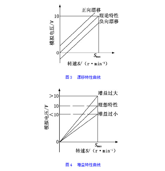 模拟量(liàng)輸出的漂移(yi)特性曲線如(rú)圖3所示,調整(zheng)漂移參數可(ke)改變轉速S0所(suo)對應的電壓(yā)輸出值,使特(te)性曲㊙️線上下(xia)平移。本🆚例中(zhong)漂移參數設(shè)定為0時,實測(cè)S0轉速對應電(diàn)壓為-0.048V,特📧性曲(qu)線為負向漂(piāo)移曲線。經計(jì)算和設定漂(piao)移參數後,再(zài)💰次實測漂移(yi)電壓為-0.002V,基本(běn)接近😄于0V,特性(xìng)曲線基本接(jie)近理想特性(xing)曲線。
